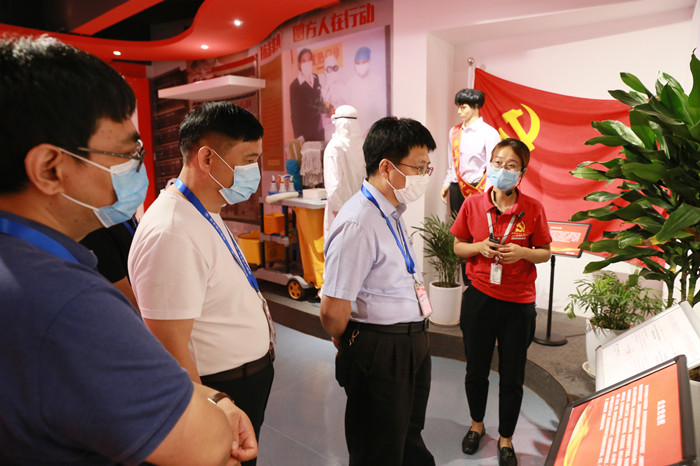 在圓方集團黨建培訓室,全體黨員干部體驗了唱國歌、亮身份、溫誓詞等主題黨課儀式,并觀看了黨建宣傳片《我的中國我的夢之“網(wǎng)紅薛書記”講黨課》。隨后,在圓方集團工作人員的詳細講解下,全體黨員干部參觀學習了圓方創(chuàng)業(yè)紀念館、圓方黨建紀念館、中國微黨史國史館、“抗疫情、戰(zhàn)新冠”展教館、網(wǎng)紅薛書記直播間、圓方“三會一課兩培訓”黨建文化長廊、圓方勞模星光大道和圓方先進工作者展示墻等。大家被圓方集團濃厚的黨建氛圍深深的吸引與打動,為薛書記引領(lǐng)下崗工人和農(nóng)民工在平凡崗位創(chuàng)造不平凡人生而感動,被圓方集團共產(chǎn)黨員“平時看出來、困難站出來、危急豁出來”的宣言和行動所震撼,再次感受到了“黨建也是生產(chǎn)力”的深刻內(nèi)涵。