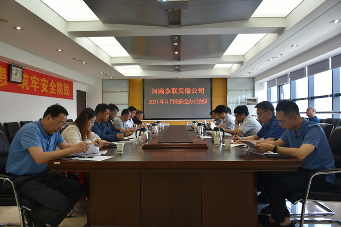 2021年5月28日,河南省永聯(lián)民爆器材股份有限公司召開了5月份安全辦公會議,公司領(lǐng)導(dǎo)班子、安委會成員、安委會辦公室成員以及宜陽縣、汝州、陜州、信陽平橋、淅川、鶴壁等6家分公司負(fù)責(zé)人參加了會議。會議由公司副總經(jīng)理靳義國主持,公司董事長、總經(jīng)理劉嵩參加會議并講話。